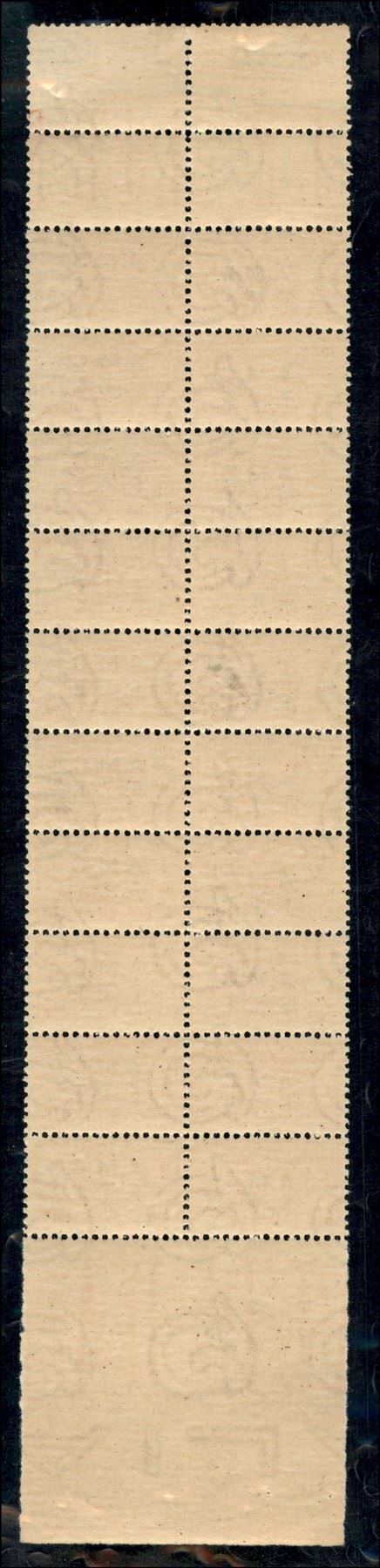 1947 - 3 lire Pacchi Postali (3) - blocco verticale di 10 centrale del foglio con soprastampe disallineate - gomma integra