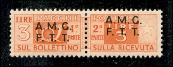 1947 - 3 lire Pacchi Postali (3if) con soprastampe disallineate - gomma integra