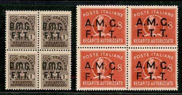 1947 - Recapito autorizzato (1/2) - serie completa in quartine - gomma integra