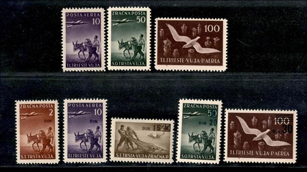 1949 - Posta Aerea (6 + 8 + 9 + 11 + 13/16) - insieme di 8 valori con gomma originale