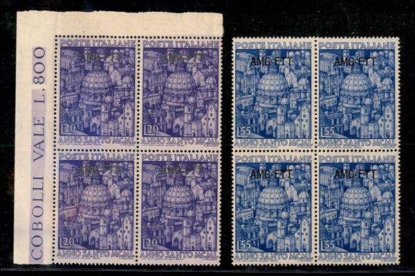 1950 - Anno Santo (73/74) - serie completa in quartine - gomma integra con leggere bande brune da classificatore