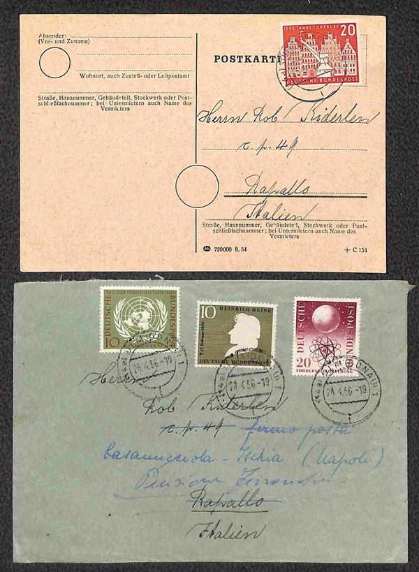 1956 - Una busta e una cartolina con affrancature diverse per l'Italia