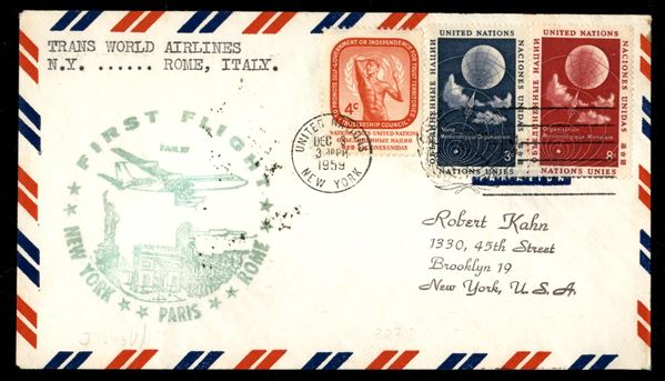 1959 (3 dicembre) - New York Roma (Pellegrini 1074) - aerogramma dall'ONU