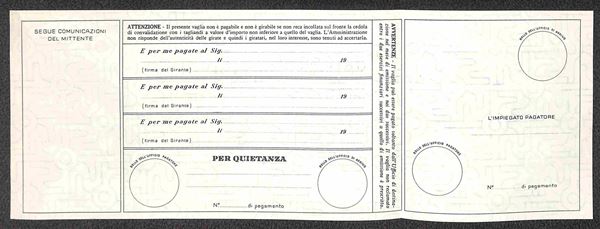 1966 - Bollettino Vaglia da 20 lire su 10 (V23 varietà) con soprastampa spostata - nuovo - non catalogato