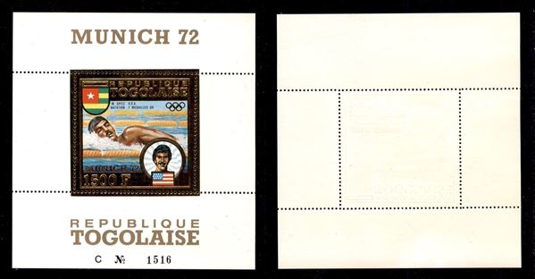 1973 - 1500 franchi Spitz - Foglietto Vincitori Medaglie Olimpiadi Monaco (Block 70A) - gomma integra (170)