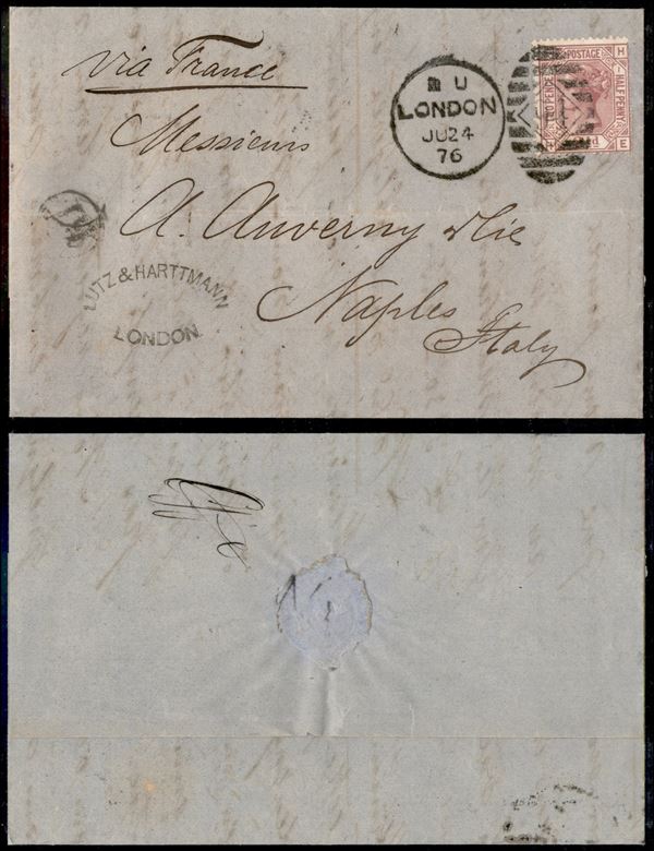 2 1/2 pence (40 - tav. 1) su lettera da Londra a Napoli del 24.7.76