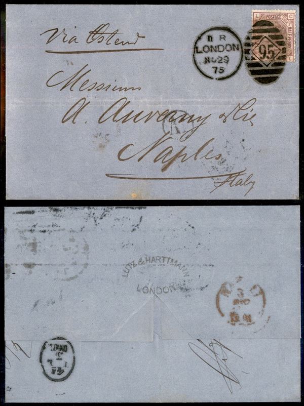 2 1/2 pence (40 - tav. 3) su lettera da Londra a Napoli del 29.11.75