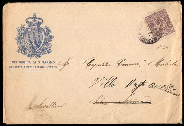 2 cent Cifra (34) isolato su busta aperta tariffa stampe per Avellino del 6 ottobre 1909