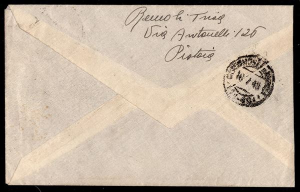 20 lire OMS (607) isolato su busta da Pistoia a Bologna del 15.7.1949