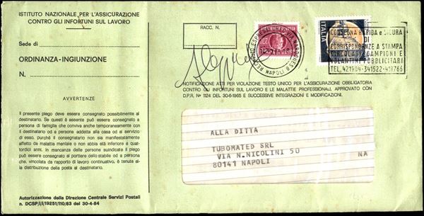 270 lire Recapito (16) + complementare (1506A) su busta per cittą Napoli 14.7.85