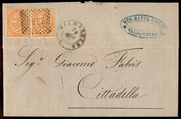 2836 a punti di Valmadrera su coppia del 10 cent (T17) - lettera per Cittadella del 20.12.73
