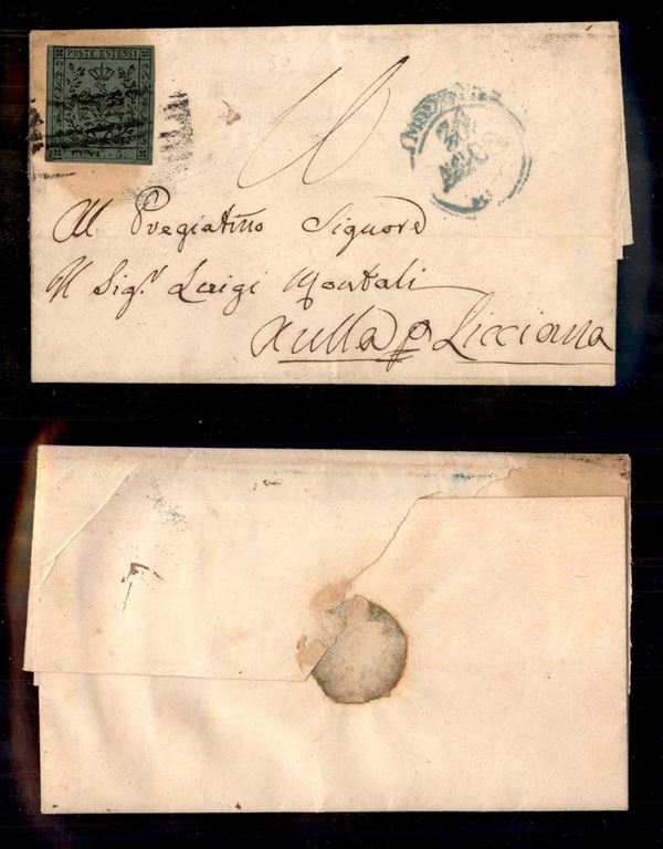 5 cent (8 - verde oliva) isolato su lettera da Modena a Licciana del 30.8.58 - tassata (1.000)