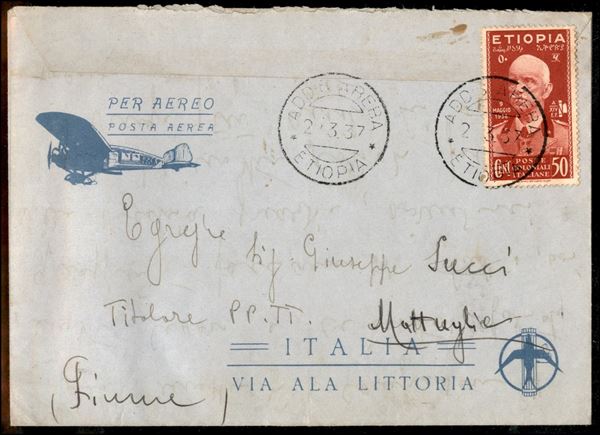 50 cent Effigie (5) isolato su lettera da Addis Abeba per Mattuglie del 2.3.37
