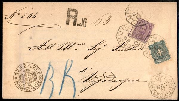 60 cent + 5 cent (47 + 67) su raccomandata con annullo ottagonale di collettoria Campo d'Arsego per Vigodarzere del 7 set. 97 - non comune