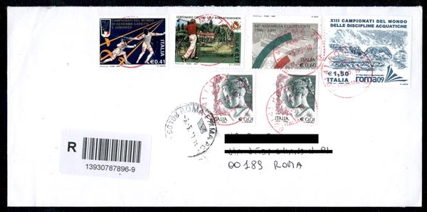 60 cent Assemblea Costituente (2913) con dentellatura spostata in alto + complementari su busta raccomandata per Roma 5.5.10