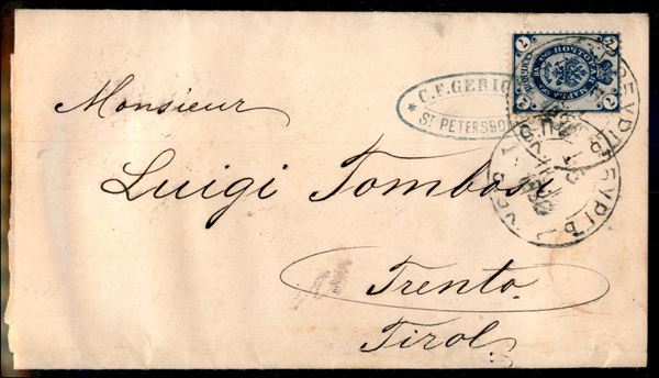 7 kopechi (33A) su lettera da S. Pietroburgo a Trento del 15.6.1886