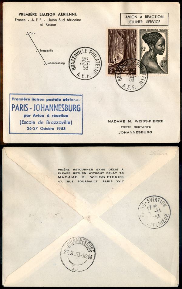 A.E.F. - 1953 (26 ottobre) - Parigi Johannesburg - aerogramma da Brazzaville