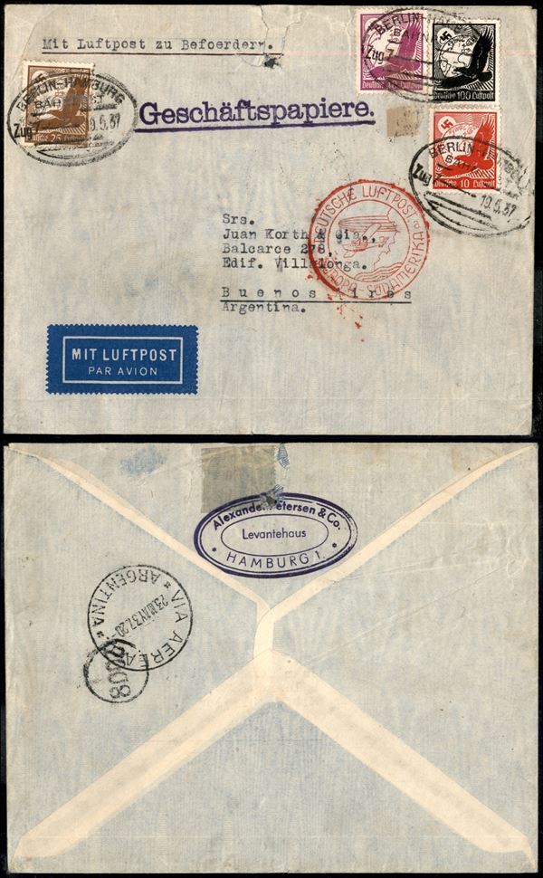 Aerogramma da Berlino a Buenos Aires del 19.5.37 (510 + 533 + 534 + 537)