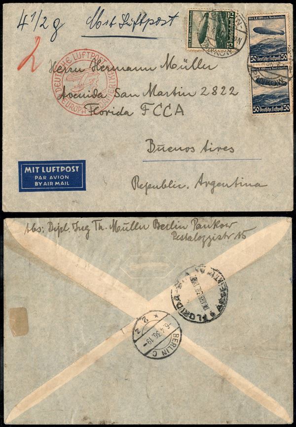 Aerogramma da Berlino a Buenos Aires del 6.4.36 (606 + 607 coppia)