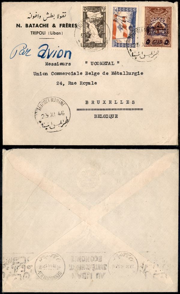 Aerogramma da Tripoli Marina a Bruxelles del 23.11.46
