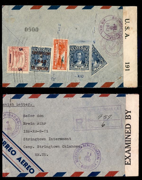 Aerogramma raccomandato per Chicago del luglio 1942 con interessante affrancatura multipla al retro