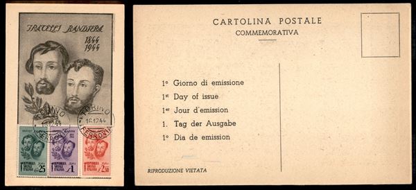 Bandiera (512/514) - serie completa - tre valori su cartolina ufficiale dell'emissione - Torino 16.12.44