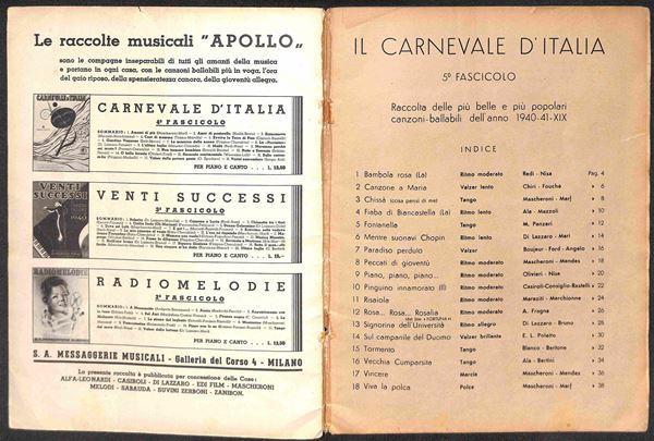 Boccasile - Carnevale d'Italia - Le pił belle canzoni 1940/1941 - 5° fascicolo - 40 pagine copertinate (23X31) - buone condizioni di conservazione