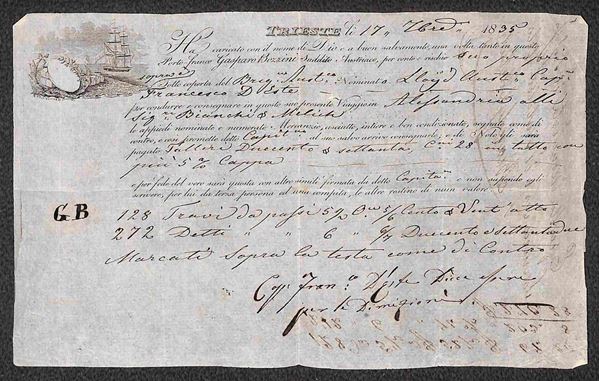 Bolla di Carico da Trieste a Alessandria del 17.9.35