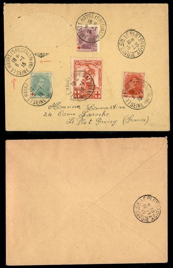 Busta con affrancatura mista (105 + 107/109) da Le Havre a le Plot Groisy del 6.1.15