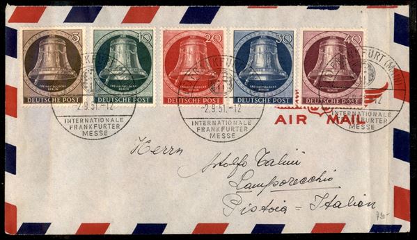 Campana della libertà (75/79) - busta da Francoforte a Pistoia del 2.9.51