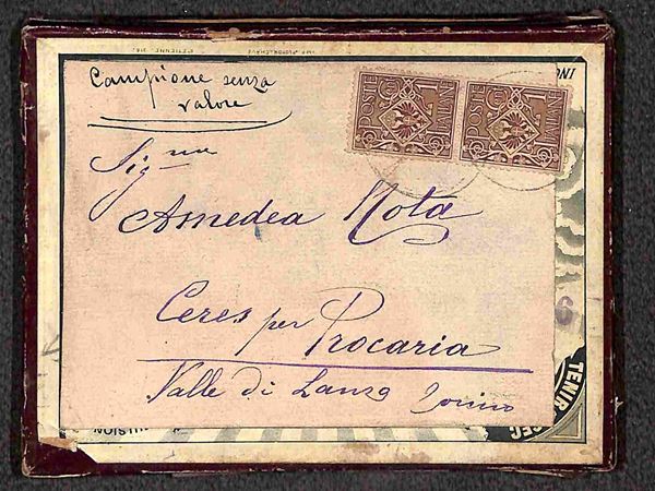 Campione senza valore con Floreale coppia 1 cent - scatoletta contenente lastra fotografica in vetro diretta a Procaria