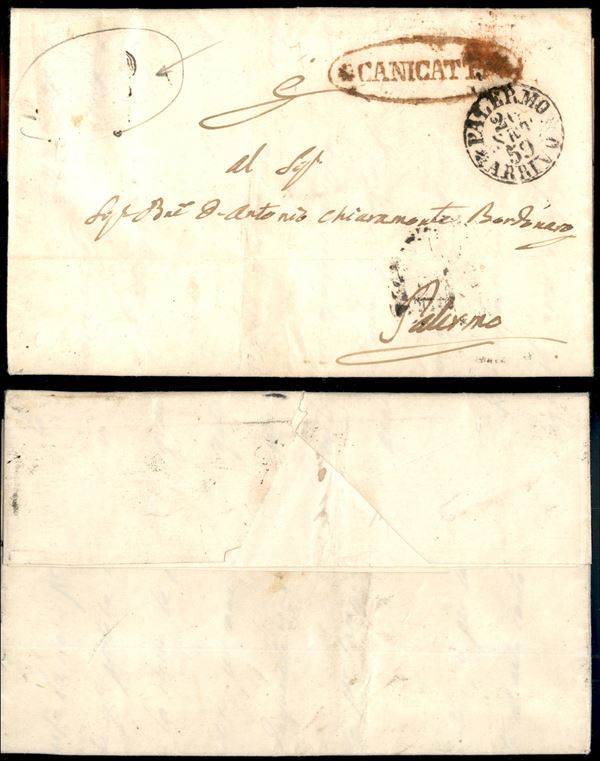 Canicattė (P.ti 8) - lettera per Palermo del 24.9.59 - francobollo asportato
