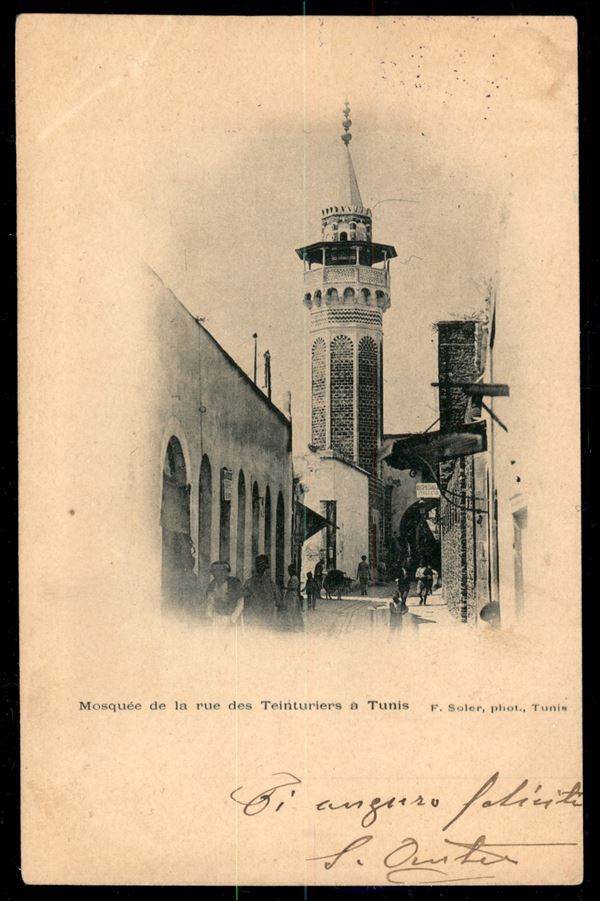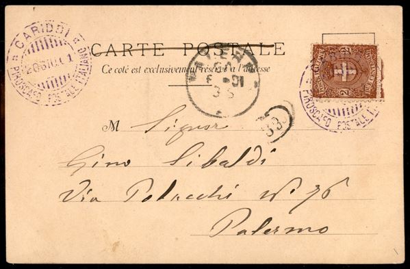 Cariddi Piroscafo Postale Italiano 20.6.01 (viola) - 2 cent (66) su cartolina da Tunisi a Palermo
