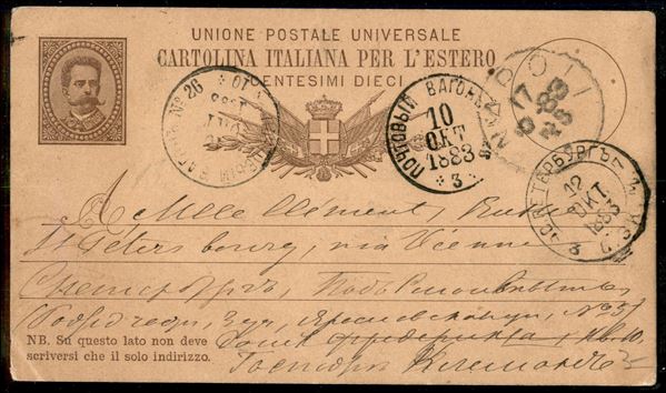 Cartolina Postale per l'estero 10 cent senza millesimo da Napoli 17.10.83 per la Russia - ingiallita