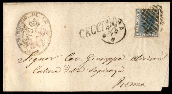 Ceccano (Pti 7) - 20 cent (26) difettoso su involucro di lettera per Roma del 21.12.71