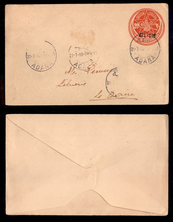 CILICIA - busta postale da 20 para da Adana al Cairo del 31.7.19