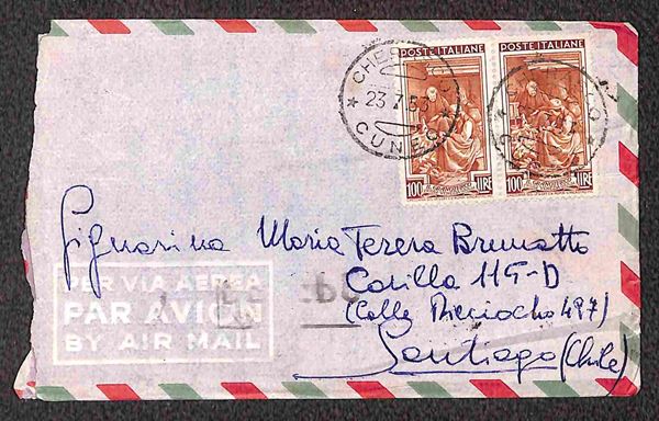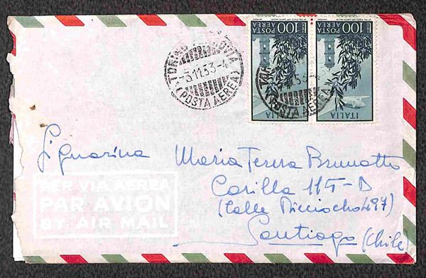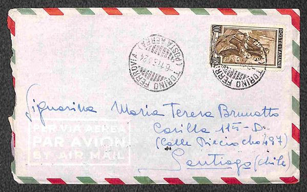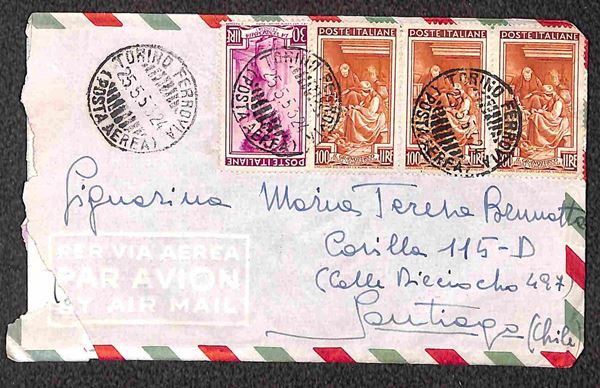 Cinque aerogrammi per Santiago del Cile con affrancature differenti Italia al Lavoro e Campidoglio del periodo 1952/53 - notato 200 lire Italia al Lavoro isolato