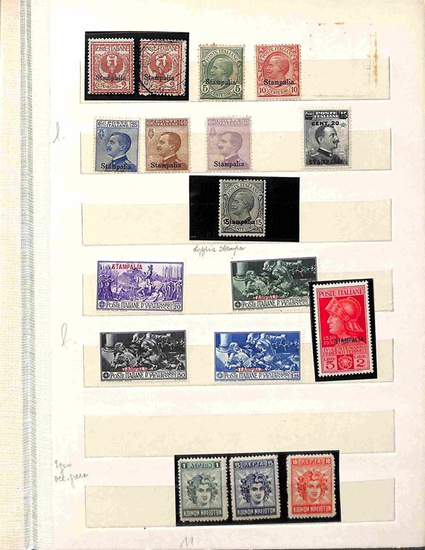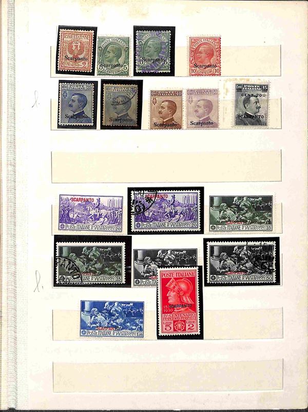 COLONIE - Isole dell'Egeo - Scarpanto + Simi + Stampalia - Insieme misto nuovo e usato su 3 pagine di classificatore - da esaminare