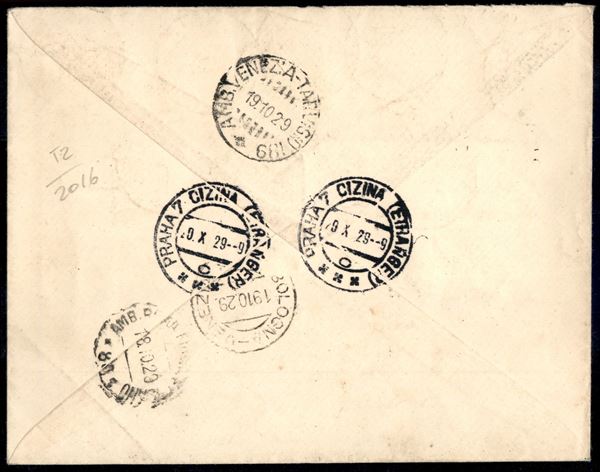 Conciliazione sei valori + 2 lire Espresso (6/7 + 9/12 + Espressi 1) su raccomandata del 18.10.29 per la Cecoslovacchia