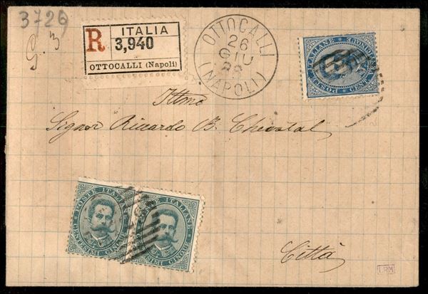 Coppia 5 cent + 25 cent (37 + 40) su raccomandata per cittą da Ottocalli (Napoli) del 26 giu. 88