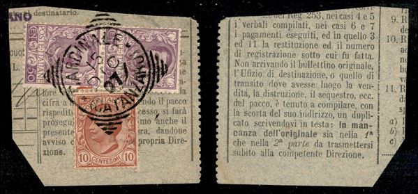 Coppia del 50 cent Floreale (76) + 10 cent Leoni (82) usati su frammento di Bollettino