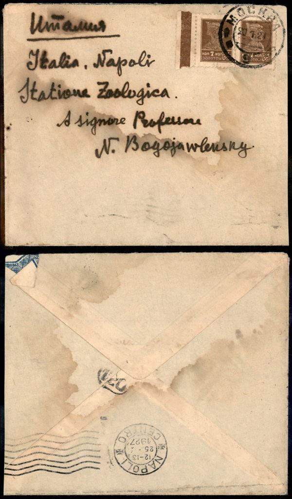 Coppia del 7 kopechi (277) su busta da Mosca a Napoli del 20.1.27