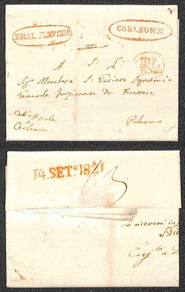 Corleone + Real Servizio + Sigillo (rossi) - lettera per Palermo del 13.9.1821