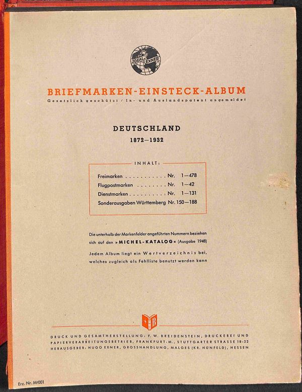 Deutschland 1 - 1872/1932 - Album Jdeal Exner per francobolli a cartella con taschine con all’interno qualche presenza di valori nuovi e usati - - buone condizioni