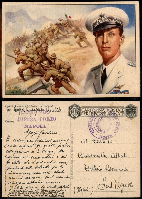 Duca d'Aosta - cartolina postale in franchigia (F68/1) del Comando Difesa Porto Napoli usata