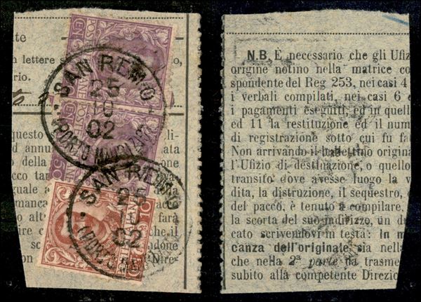 Due 50 cent Floreale (76) + 10 cent (71) usati su frammento di Bollettino