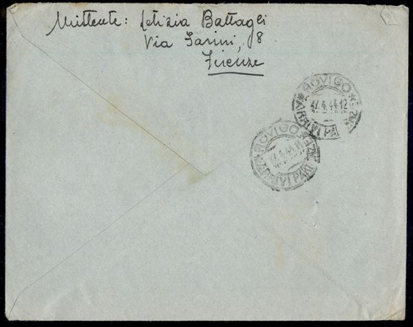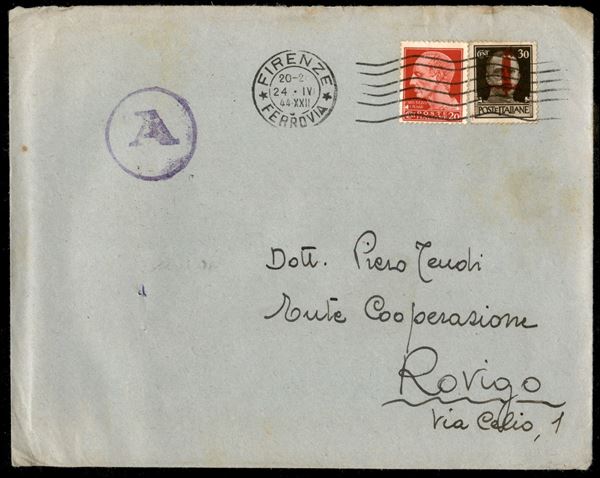 Firenze - 30 cent (492F - rosso bruno) + complementare (247) - busta da Firenze a Rovigo del 24.4.44