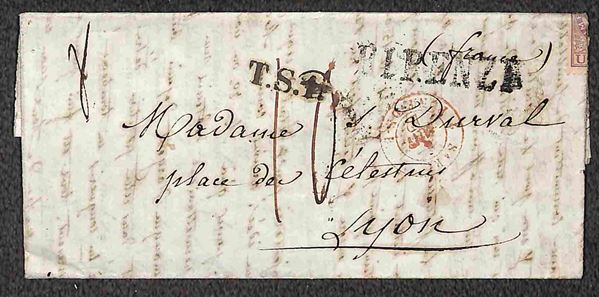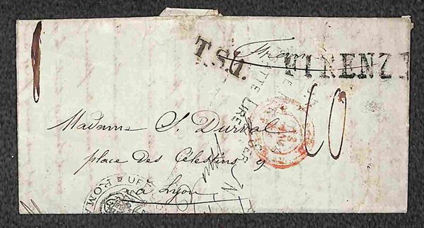 Firenze + T.S.1 - Insieme di tre lettere per Lione del 1842