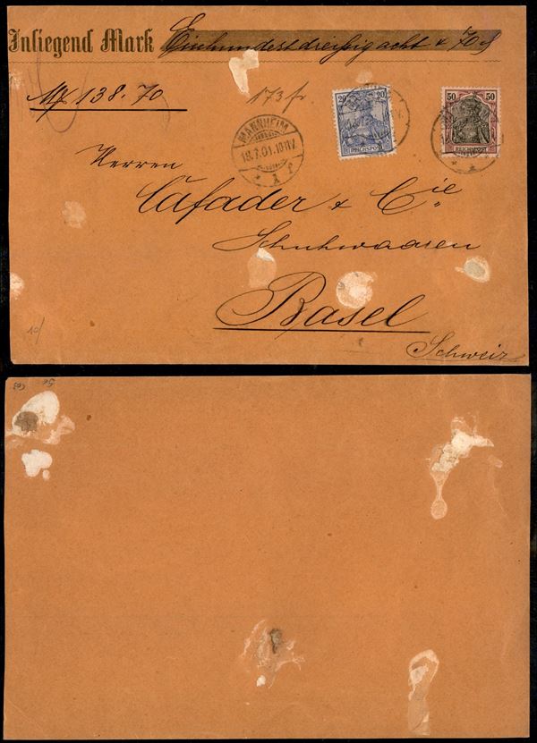 Frontespizio di assicurata (x 173 franchi oro) da Mannheim a Basilea del 18.7.01