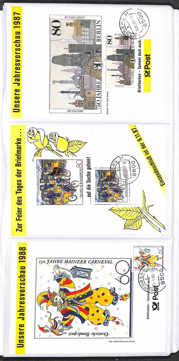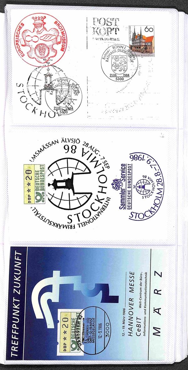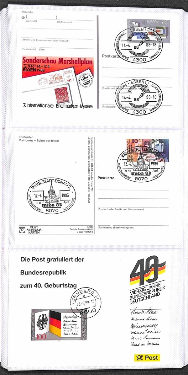 GERMANIA - Anni '80 - Collezione di 96 cartoline e interi postali del periodo con timbri commemorativi in album raccoglitore - da esaminare